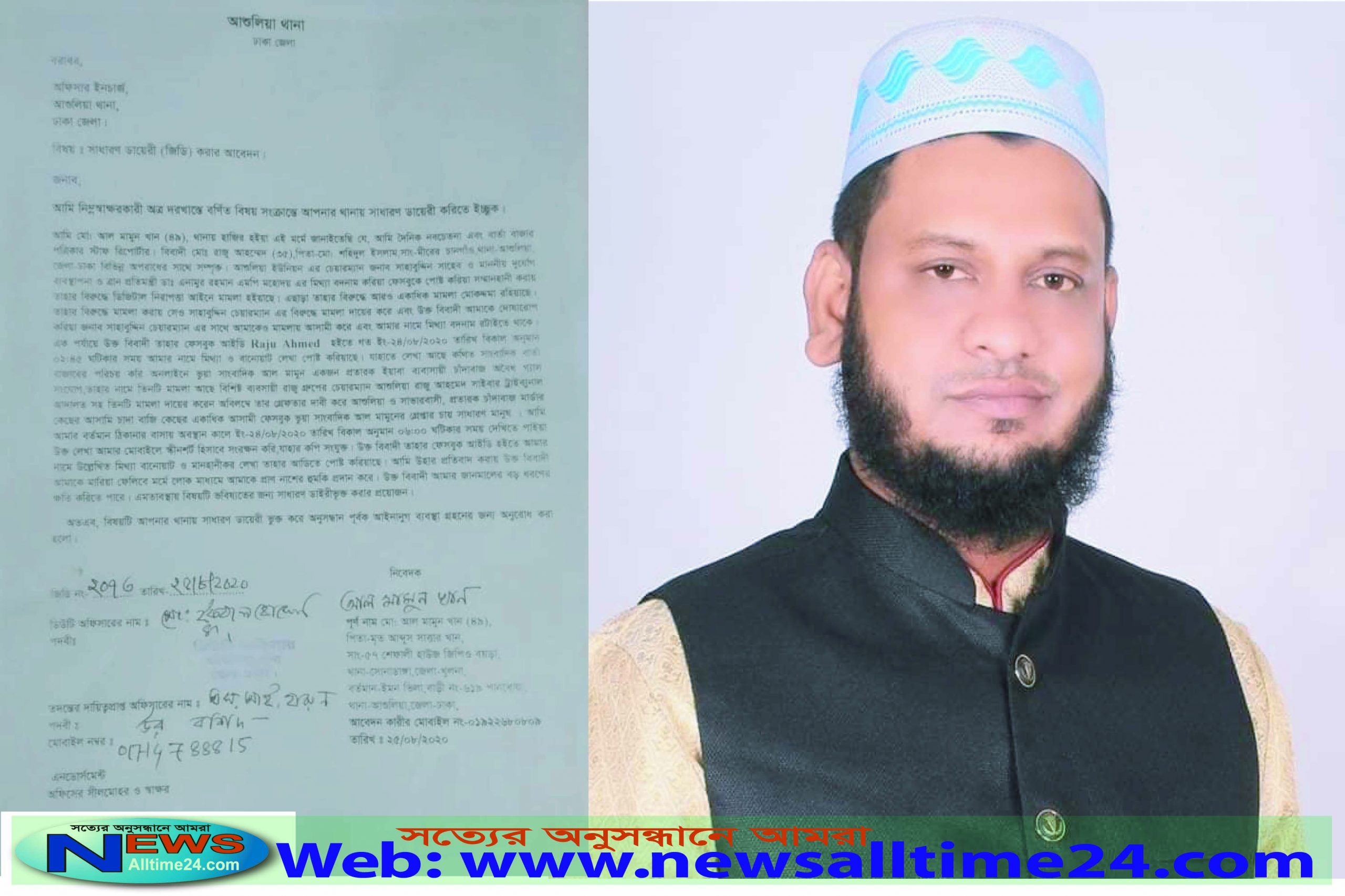 এব্যাপারে সাংবাদিক আল মামুন খানের কাছে জানতে চাইলে তিনি জানান,রাজু আহমেদ নামের এক ব্যক্তি আমার বিরুদ্ধে সামাজিক যোগাযোগ মাধ্যমে মিথ্যা অপপ্রচার চালানোর দ্বারা সম্মানহানি করেছেন । এতে আমার জানমালের বড় ধরণের ক্ষতি সাধন করতে পারে বিধায় আইনি সহায়তা পেতে আশুলিয়া থানায় সাধারণ ডাইরী করলাম ।