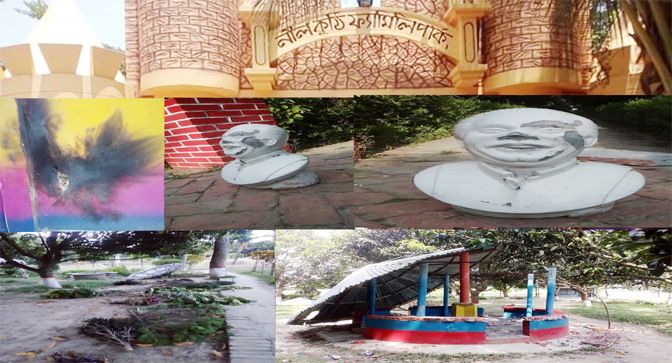 জীবন বাঁচতে তারা পাশর্^বর্তী বাড়ী ঘরে আশ্রয় নেয়। পরে তারা বঙ্গবন্ধুর ভাস্কর্য,বিনোদন কেন্দে নির্মিত শৈল্পীক নিদর্শন গুলি ভাংচুর,শাতাধিক বনজ,ফলজ গাছ কেটে ফেলে। এতে বিনোদন কেন্দ্রটিতে প্রায় ১৫ লাখ টাকার ক্ষয়ক্ষতি হয়েছে বলে নীলকুঠি পার্কের স্বত্ত্বাধিকারী এবং উলাশী ইউনিয়ন পরিষদের সদস্য তরিকুল ইসলাম মিলন সাংবাদিকদের জানান। তিনি আরও বলেন পার্ক সংলগ্ন পাশর্^বর্তী ঝিকরগাছা থানার নির্বাস খোলা ইউনিয়নের মির্জাপুর গ্রামের ২নং ওয়ার্ডের ওয়ার্ড মেম্বার আইনাল এর নির্দেশে এই তান্ডব চালানো হয়। বিএনপি-জামায়াত তুষ্ট আইনাল লোক দ্বারা ইতো পুর্বে উলাশী বাজারে তার উপর বোম বিস্ফোরন ঘটিয়ে হত্যা চেষ্টা চালায়।