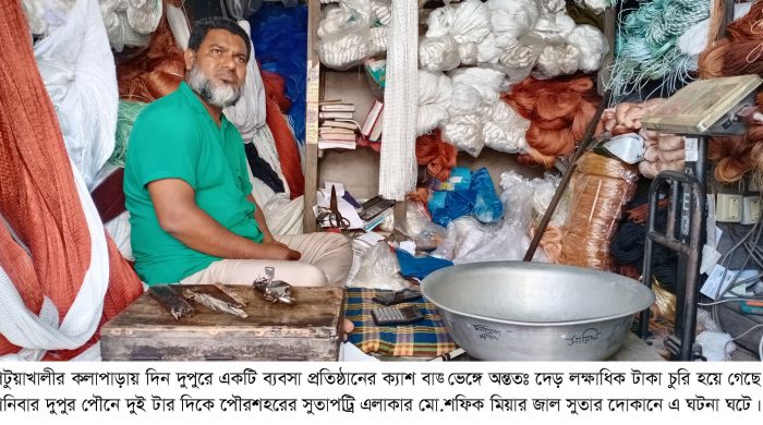 এসময় দোকনের কেচিগেট টেনে রেখে যান। নামাজ পড়ে এসে দোকানে ঢুকে ক্যাশ বাক্সের তালা ভাঙ্গা দেখতে পান। খুঁজে দেখেন কোন টাকাই নেই। তার বিক্রিসহ বিভিন্ন এলাকার পাইকাররা টাকা পাঠিয়েছে। সব মিলিয়ে টাকা গননা ছিল না। তবে এক  থেকে টাকা দেড় লাক্ষ টাকার অধিক হবে বলে তিনি জানান ।