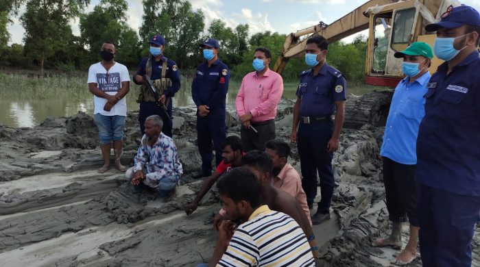 জানা যায়, বৃহস্পতিবার বিকেলে উপজেলার নীলগঞ্জ ইউনিয়নের নিজকাটা গ্রাম সংলগ্ন আন্ধার মানিক নদীতে পল্টুন ব্যবহার করে ভেকু মেশিন দিয়ে যমুনা ব্রিকফিল্ড’র জন্য অবৈধ ভাবে মাটি কাটে অভিযুক্তরা। এসময় ভেকু মেশিন ও পল্টুন জব্দ করে স্থানীয় জনপ্রতিনিধির কাছে জিম্মা রাখা হয়। এবং অভিযুক্ত মো: অলিউদ্দীন হাং (২৫), মো: সোহেল গাজী (২১) এবং মো: সুমন মৃধা (২৩) কে বালু মহল ও মাটি ব্যবস্থাপনা আইন ২০১০ এর ৪ ধারা লংঘনে ১৫ ধারা অনুযায়ী প্রত্যেককে ১ লক্ষ টাকা করে মোট ৩ লক্ষ টাকা দন্ড প্রদানান করা হয়। অভিযুক্তরা দন্ডের টাকা পরিশোধ করায় তাদের ছেড়ে দেয় ভ্রাম্যমান আদালত।