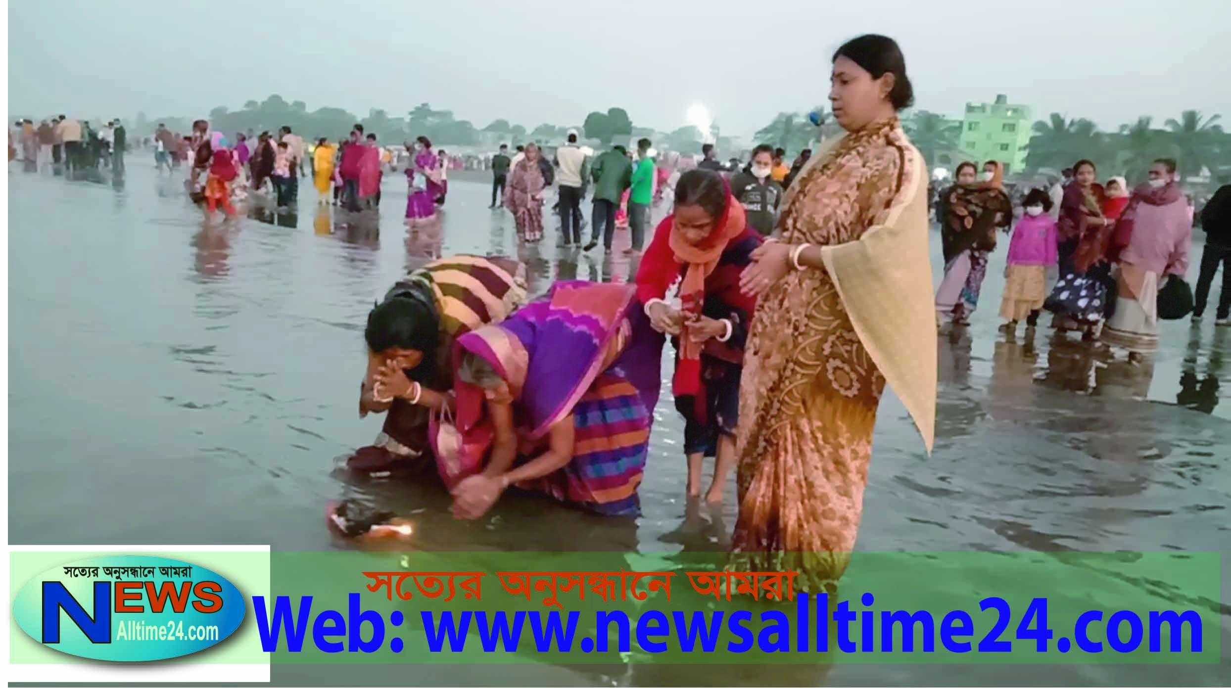 কুয়াকাটায় বেল,পাতা, ফুল, ধান, দূর্বা, হরিতকী, তেল, সিঁদুর সমুদ্রের নীল জলে অর্পন করে গঙ্গা স্নান সম্পন্ন।।