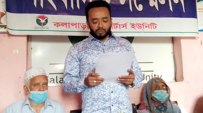 বৃহস্পতিবার বেলা ১২ টায় কলাপাড়া রিপোর্টার্স ইউনিটিতে এ সংবাদ সম্মেলন করে । এসময়  তার বৃদ্ধ পিতা সমাজ সেবা অধিদপ্তরের অবসারপ্রাপ্ত লাল মোহম্মদ সন্যামত, মাতা মোসা.সালমা বেগম ও তার ছোট ভাই মামুন উপস্থিত ছিলেন।