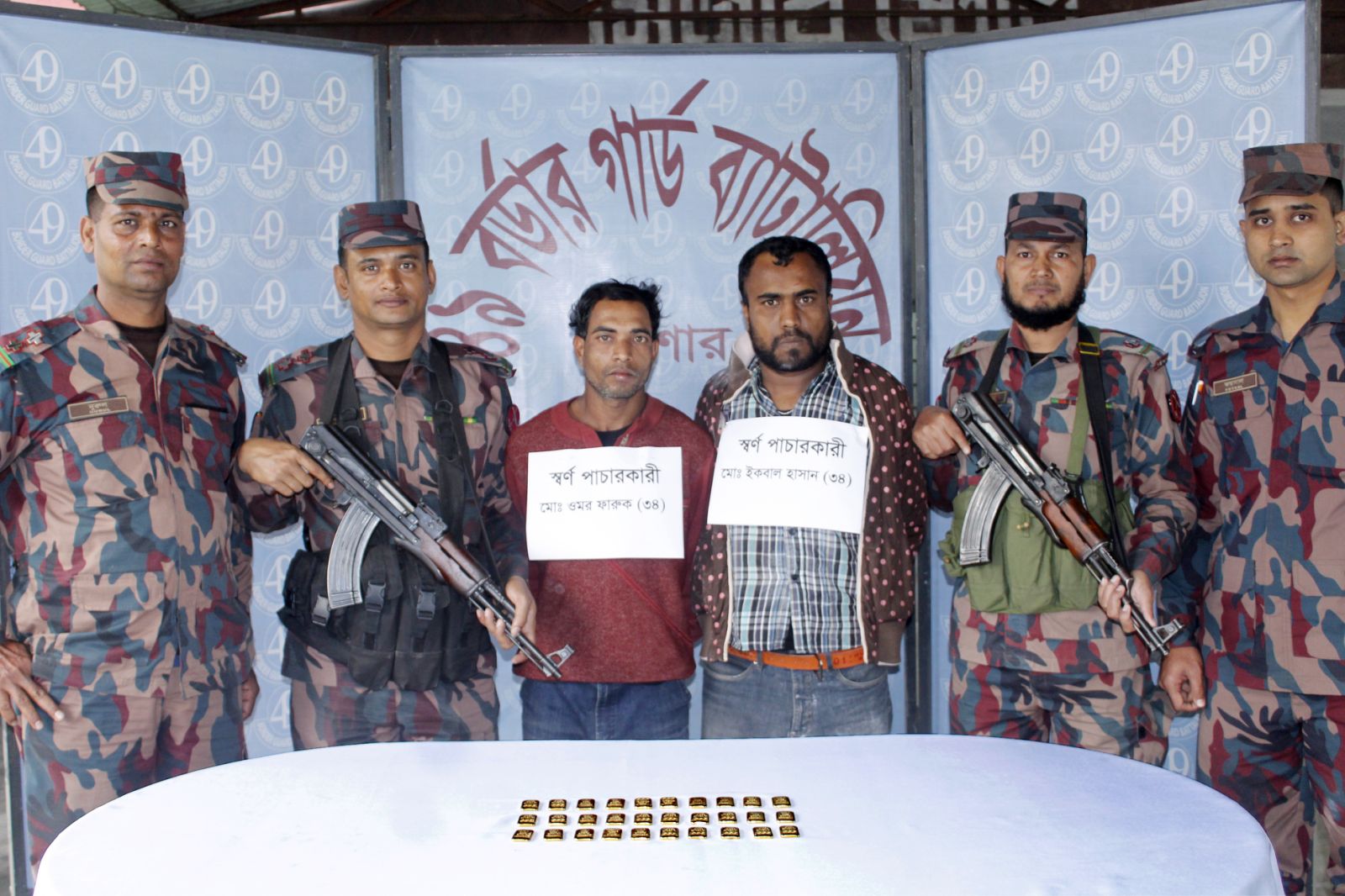 ৪৯ বর্ডার গার্ড ব্যাটালিয়নের অধিনায়ক লেঃ কর্নেল মো. সেলিম রেজা বলেন, গোপন সংবাদের ভিত্তিতে বেনাপোল বড় আঁচড়া গ্রামে অভিযান চালিয়ে ৩০পিস স্বর্ণ সহ দুই পাচারকারীকে আটক করা হয়।