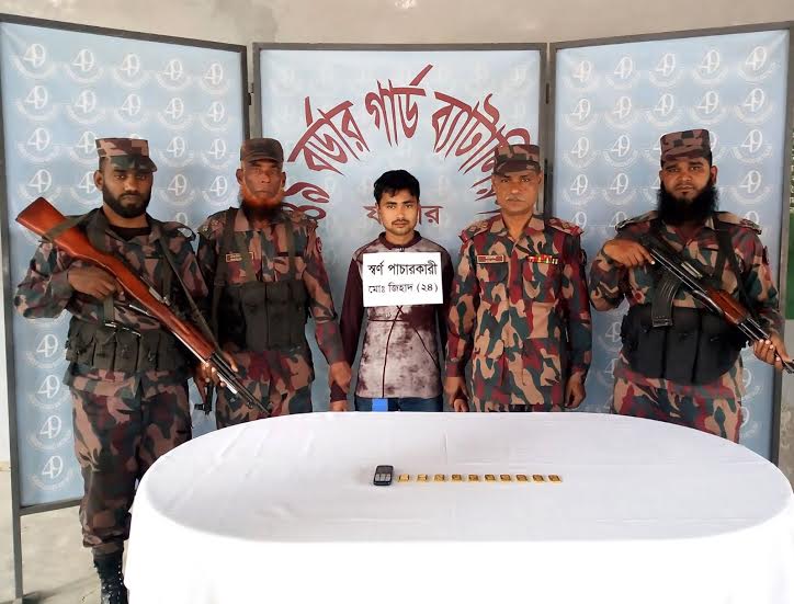 ৪৯ বর্ডার গার্ড ব্যাটালিয়ন বিজিবি’র অধিনায়ক মোঃ সেলিম রেজা প্রেস বিফিংয়ে জানান, বুধবার(৫ ফেব্রয়ারি) সকালে কাশিপুর বিওপি’র সুবেদার আব্দুল মালেক গোপন সংবাদের ভিত্তিতে বেনাপোল পোর্ট থানাধীন সাদিপুর পাকা রাস্তার উপর থেকে ১০ টি স্বর্ণের বার সহ জিহাদকে আটক করা হয়। আটককৃত স্বর্ণের সিজার মূল্য ৬৯,৯৬,০০০/- (ঊনসত্তর লক্ষ ছিয়ানব্বই হাজার) টাকা। আটক জিহাদ আলীকে স্বর্ণসহ বেনাপোল পোর্ট থানায় হস্তান্তর করা প্রক্রিয়া চলছে।