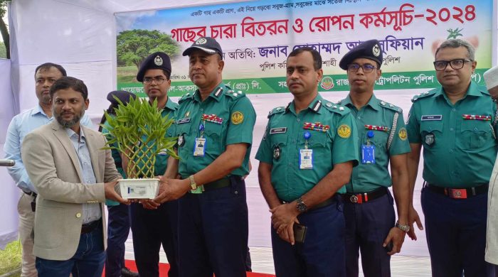 একটি গাছ একটি প্রাণ, এই নিয়ে গড়বো সবুজ গ্রাম, সবুজের মাঝে সতেজ নিশ্বাস আমরা জোগাবো বিজয়ের আশ্বাস” এই স্লোগানে গাছের চারা বিতরণ ও বৃক্ষরোপণ কর্মসূচি ২০২৪ এর উদ্বোধন করেন রাজশাহী মেট্রোপলিটন পুলিশ (আরএমপি) কমিশনার।