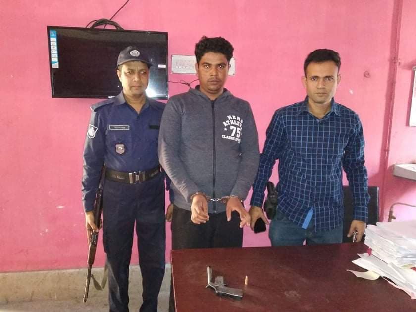 শার্শা থানা পুলিশের অফিসার ইনচার্জ (ওসি) এম মশিউর রহমান জানান, চোরাচালান প্রতিরোধ ও মাদক দ্রব্য উদ্ধারে বিশেষ অভিযান কালে গোপন সংবাদের ভিত্তিতে সঙ্গয় ফোর্স নিয়ে শার্শা উপজেলা কলেজের সামনে অবস্থান করে। এ সময় পোতাপাড়া মোড়ের ব্রীজের উপর একজনকে সন্দেহজনক ভাবে ঘোরাফেরা করতে দেখে তাকে জিজ্ঞাসাবাদ করলে সে অসৌজন্য মুলক কথাবার্তা বলতে থাকে। এ সময় তার দেহ তল্লাশী করলে তার প্যান্টের ভেতর থেকে ১টি ওয়ানশুটার গান ও ১রাউন্ড গুলি উদ্ধার করা।