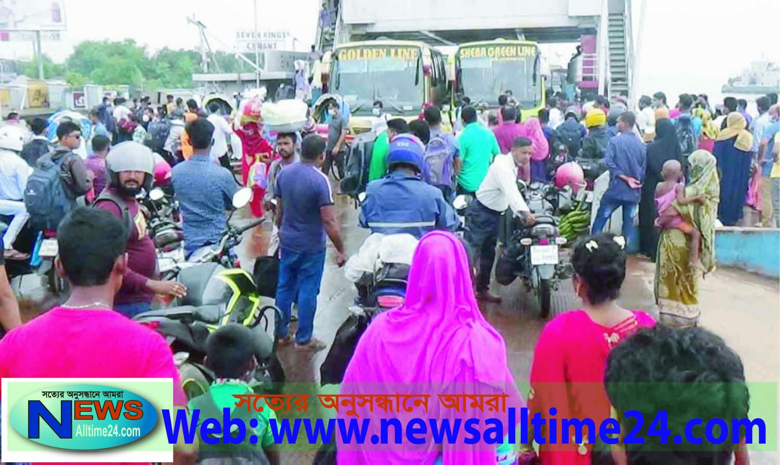 তবে প্রাইভেটকার ও মাক্রোবাস চলমান অন্য একটি সারি রয়েছে।এদিকে দীর্ঘ সময় পারের অপেক্ষায় থেকে গরমের মধ্যে যানবাহনের চালক ও যাত্রীদের চরম দুর্ভোগ পোহাতে হচ্ছে। শিশু বাচ্চা ও বয়স্ক মানুষের জন্য দুর্ভোগ বেশি হচ্ছে। এর মধ্যে কোন যানবাহনেই সামাজিক দুরত্ব বজাই রাখার বালাই নেই। মাস্ক ব্যবহার করতেও অনিহা দেখাযায় যাত্রীদের। চুয়াডাঙ্গা থেকে ঢাকাগামি (ঢাকা মেট্রো-ড-১৪-৭২৮৪) ট্রাকচালক ইকরাম হোসেন বলেন, মিষ্টি কুমড়া নিয়ে ঢাকায় যাচ্ছি। কিন্ত দৌলতদিয়া ফেরি ঘাটে যানবাহনের দীর্ঘ সারি হওয়ার কারণে বসে আছি। কখন ফেরি পার হতে পারবো বলতে পারছিনা। তিনি আরো বলেন, ঘাটে দীর্ঘ সময় বসে থাকায় অতিরিক্ত টাকা ব্যয় হচ্ছে। অনেক পচনশীল মালগুলো নষ্ট হয়ে যাচ্ছে। এতে মালের পার্টি আর্থিক ভাবে ক্ষতি গ্রস্ত হচ্ছে। বেনাপোল থেকে ঢাকাগামি একটি কাভার ভ্যান (ঢাকা মেট্ট্রো ন-১৩-২৪২১) চালক বিকাশ শাহা বলেন, জরুরী ওষুধ লোড। তারপরও দীর্ঘ সময় দৌলতদিয়া ফেরি ঘাটে। তিনি বলেন, ফেরি ঘাটে যদি প্রতিনিয়ত ঘণ্টার পর ঘণ্টা অপেক্ষা করতে হয় তাহলে আমরা চলবো কিভাবে। গোল্ডেন লাইন যাত্রী বাহি পরিবহনের এক যাত্রী বলেন, দৌলতদিয়া ঘাটে ২ঘণ্টা ফেরি অপেক্ষায় রয়েছি। আরো কত সময় লাগবে ঠিক নিশ্চিত বলতে পারবো না। কেউ বলতে পারবে না। তিনি বলেন, একটি জায়গা যদি ২/৩ ঘণ্টা অপেক্ষা থাকতে হয় তাহলে অন্য কাজ করবো কখন। বাংলাদেশ অভ্যান্তরীন নৌপরিবহন করপোরেশন (বিআইডব্লিউটিসি) দৌলতদিয়া ঘাট শাখার সহব্যবস্থাপক মোঃ মাহাবুব হোসেন জানান, অতিরিক্ত যানবাহনের কারণে দৌলতদিয়া ঘাটে কিছু গাড়ি ফেরি পারের অপেক্ষায় রয়েছে। তিনি আরো জানান, দৌলতদিয়া-পাটুরিয়া নৌরুটে বর্তমান ১৬টি ছোট বড় ফেরি চলাচল স্বাভাবিক রয়েছে। দৌলতদিয়া পারে ৪টি ঘাট সচল রয়েছে। রাজবাড়ী এডিশনাল এসপি মোহাম্মদ সালাউদ্দিন জানান, ঈদের ছুটি শেষে বাড়তি চাপ ও নদীতে তীব্র স্রোত। এদিকে শিমুলিয়া-কাঁঠালবাড়ি নৌরুটে ফেরি চলাচল বন্ধ। উভয় সমস্যার কারণে দৌলতদিয়া ঘাটে অতিরিক্ত গাড়ি। যে কারণে ফেরি পারের অপেক্ষায় কিছু যানবাহনের সারি রয়েছে। কোন ঘাট কোন যানজট নেই। গাড়ি গুলো চলমান রয়েছে।