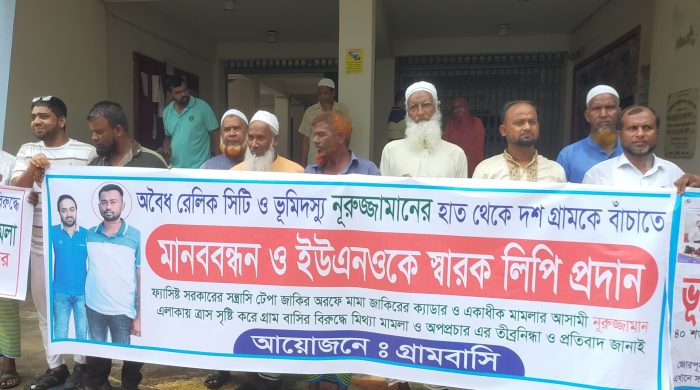 সাভারের বিরুলিয়ায় অবৈধ রেলিক সিটি ও সাভারের শীর্ষ সন্ত্রাসী ভাগ্নে জাকিরের অন্যতম ক্যাডার ভূমিদস্যু নূরুজ্জামানের মিথ্যা মামলা, অপপ্রচার এবং ১০ গ্রামের মানুষ ও তাদের কৃষিজমি রক্ষার দাবিতে মানববন্ধন কর্মসূচী পালন করেছে ভুক্তভোগী এলাকাবাসীরা।