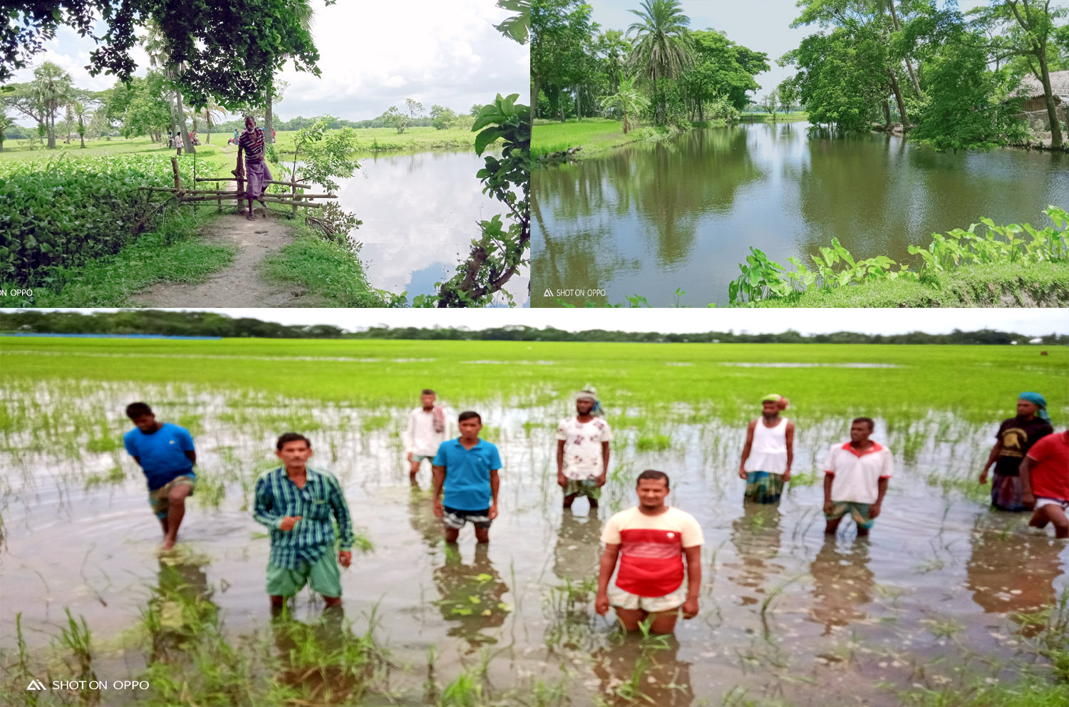 সরেজমিনে দেখা গেছে, নোমর হাট লাগোয়া পাঁচজুনিয়া কোলার প্রায় দু’হাজার একর কৃষি জমি পানির নিছে তলিয়ে রয়েছে। কোথাও কোমর সমান আবার কোথাও হাটু সমান। কৃষকরা বলেছেন,আমন ধানের মওসুমের অর্ধেকটা সময় পার হয়ে গেছে ইতোমধ্যেই। কিন্তু এখও তারা বীজ তলাই করতে পারেনি। এলাকার শহীদ হাওলাদার, খলীল মুন্সী, স্বপন হাওলাদার, জাহিদ মৃধা, জহিরুল মুন্সী, হাসান হাওলাদার একটি করে এবং আলমগীর হাওলাদার, ওহাব মৃধা, আফজাল হাওলাদার, আনছার উদ্দিন মোল্লা ও রিয়াজ মোল্লা দু’টি করে ঘের তৈরি করেছে।
