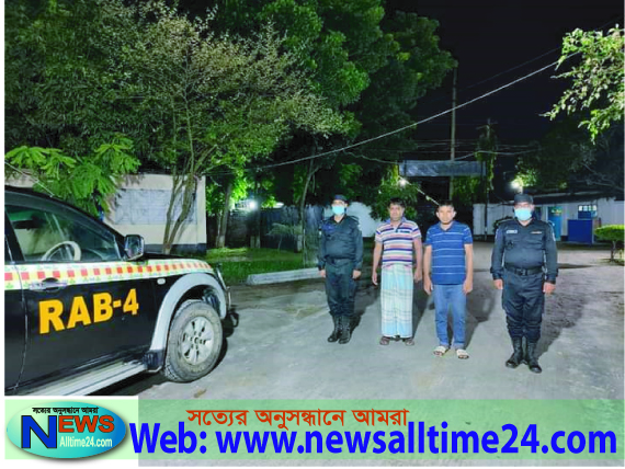 ০৪ জুলাই রোববার বিকেলে গোপন সংবাদের ভিত্তিতে র্যাব-৪ এর একটি আভিযানিক দল ঢাকা জেলার আশুলিয়া থানাধীন আমবাগান মধ্যগাজীরচট বাগবাড়ী এলাকায় অভিযান পরিচালনা করে ২,৮৩,০০০/- টাকা জালনোট, ০২ টি সিল, ০২ টি স্ট্যাম্প প্যাড, ০১ টি মোটরসাইকেল, ০৭ টি মোবাইল এবং নগদ-৯,৪৮০/- টাকাসহ নিম্নোক্ত ০২ জনকে গ্রেফতার করে। গ্রেপ্তারকৃতরা হলো (১) মোঃ জসিম (৩৫), জেলা- ঝালকাঠি। (২) মোঃ আলা উদ্দিন হোসেন হাওলাদার (৩৪), জেলা- ঝালকাঠি।