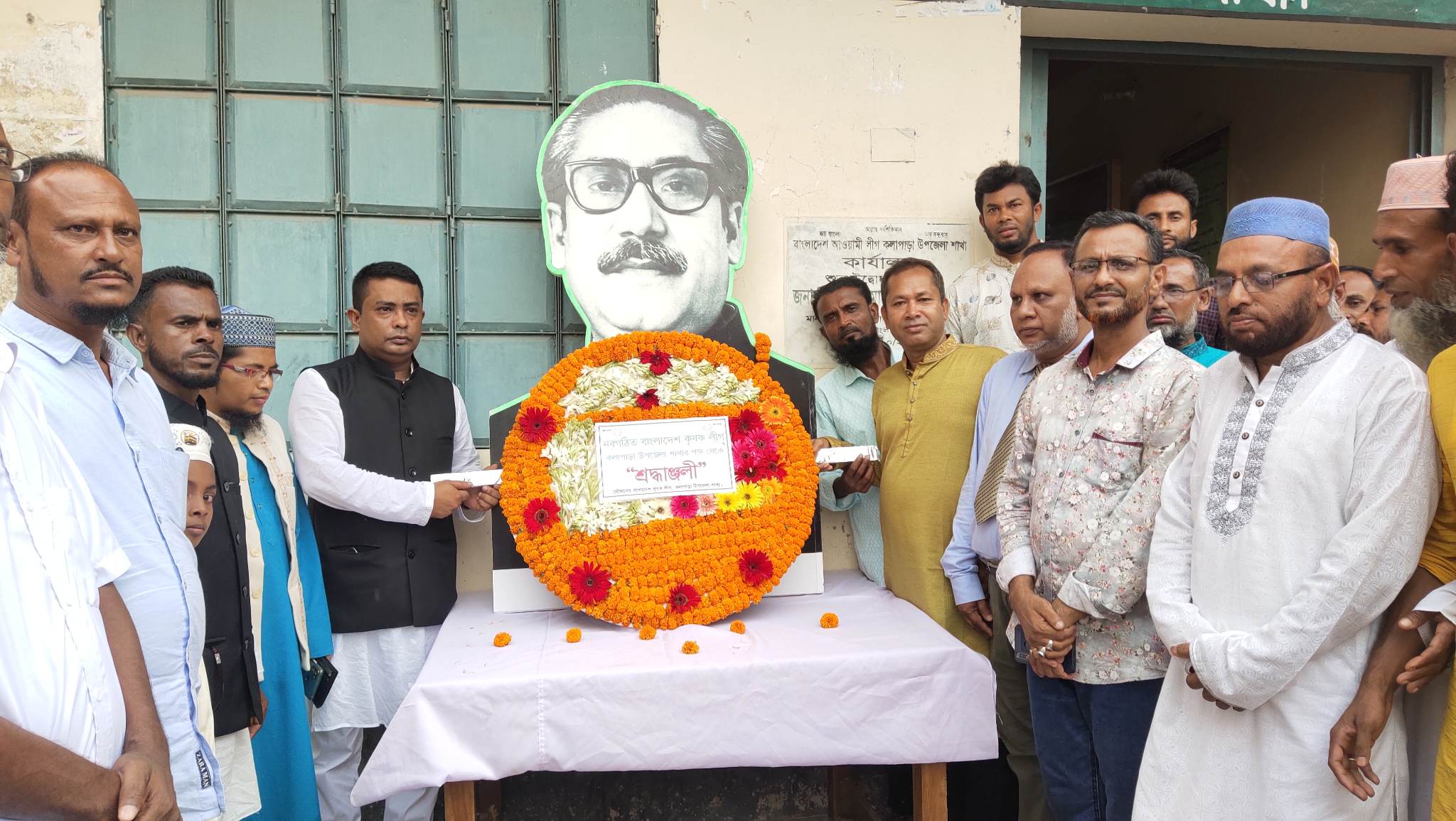 বঙ্গবন্ধুর প্রতিকৃতিতে শ্রদ্ধা নিবেদন ও পুষ্পমাল্য অর্পণ করেছেন কলাপাড়া উপজেলা কৃষকলীগের নবগঠিত কমিটির সদস্যরা। বৃহস্পতিবার বিকাল সাড়ে ৪টার আওয়ামী দলীয় কার্যলয়ের সামনে বঙ্গবন্ধুর প্রতিকৃতিতে এ শ্রদ্ধা নিবেদন ও পুষ্পমাল্য আর্পণ করেন তারা। পরে আওয়ামী দলীয় কার্যলয় মিলানায়তনে আলোচনা সভা অনুষ্ঠিত হয়।