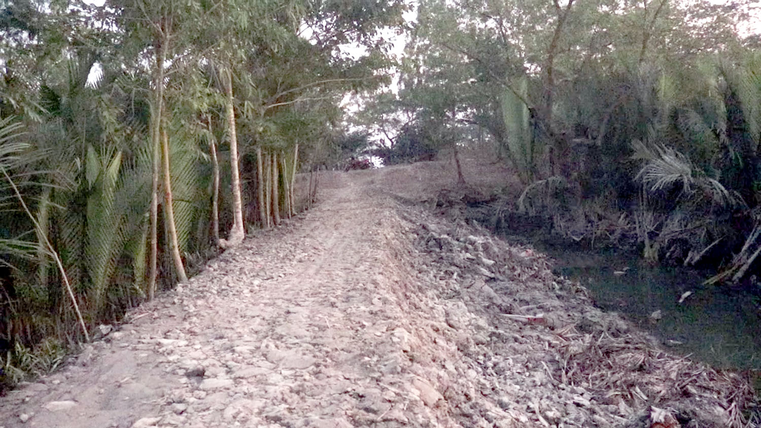স্থানীয় বাসিন্দা মো.রবিউল, মন্নান খান নামের ব্যক্তিরা সেখানে গোলগাছ কেটে পরিষ্কার করে ঘরের যাতায়াতের রাস্তা করেছেন।