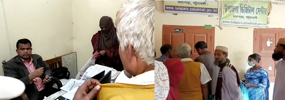 চাকামইয়া ইউনিয়ন পরিষদের তথ্য সেবা উদ্যোক্তা মো. শাহ আলম ডেপুটেশনে কলাপাড়া উপজেলা তথ্য ও যোগাযোগ প্রযুক্তি কেন্দ্রে কর্মরত থেকে এভাবে প্রকাশ্যে টাকা আদায় করছেন।