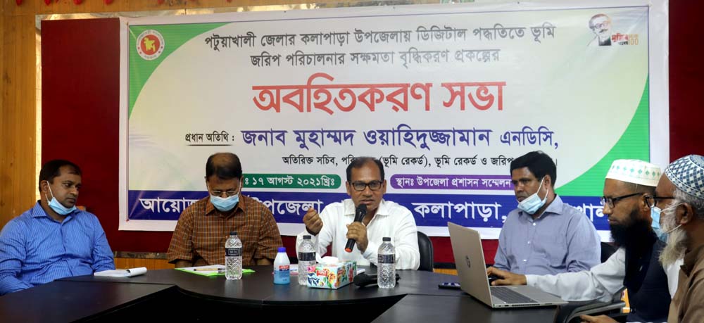 উপজেলা নির্বাহী অফিসার আবু হাসনাত মোহাম্মদ শহিদুল হক সভাপতিত্ব করেন। অন্যান্যের মধ্যে বক্তব্য রাখেন, উপজেলা চেয়ারম্যান বীর মুক্তিযোদ্ধা এসএম রাকিবুল আহসান, বরিশাল জোনাল সেটেলমেন্ট কর্মকর্তা মোঃ রেজাউল বারী, চার্জ অফিসার আব্দুল আজিজ ভ‚ঞা, কলাপাড়া প্রেসক্লাব সভাপতি হুমায়ুন কবির, ইউপি চেয়ারম্যান কাজী হেমায়েত উদ্দিন হিরন প্রমুখ।