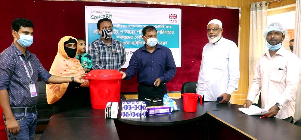 বিতরণ কালে প্রত্যেককে সার্জিক্যাল মাস্ক, ঢাকনা সহ আরএফএলের ২৫লিটারের ১টি বালতি, ২লিটারের ১টি মগ, ১০টি মেরিল সাবান, ১ প্যাকেট নেপকিন,১ কেজি গুড়া সাবান ইত্যাদি।