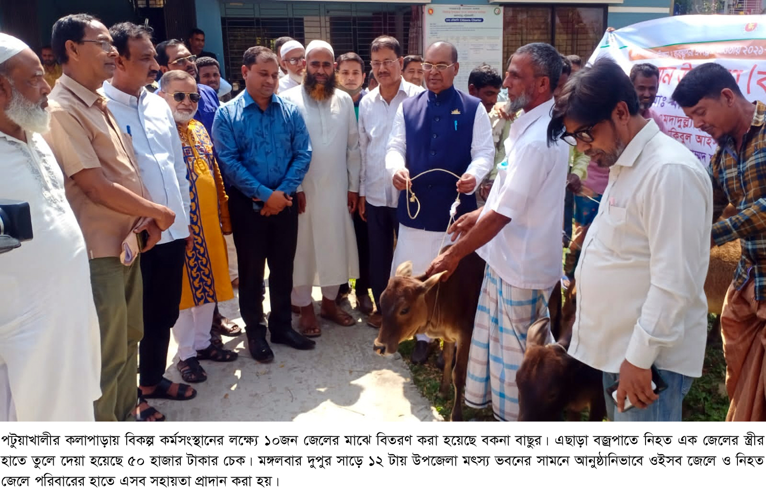 উল্লেখ্য ইলিশ সম্পদ উন্নয়ন ও ব্যবস্থাপনা প্রকল্পের আওতায় ২০২১-২২ অর্থ বছরে সুফল ভোগী জেলেদের মাঝে বিকল্প কর্মসংস্থান উপকর বকনা বাছুর বিতরণ করা হয়েছে। এছাড়া নিহত জেলে পরিবার বা স্থায়ীভাবে অক্ষম জেলেদের আর্থিক সহায়তা প্রদান নিতিমালা ২০১৯ মেতাবেক বজ্রপাতে নিহত এক জেলে পরিবারের ৫০ হাজার টাকার চেক দেয়া হয়েছে।