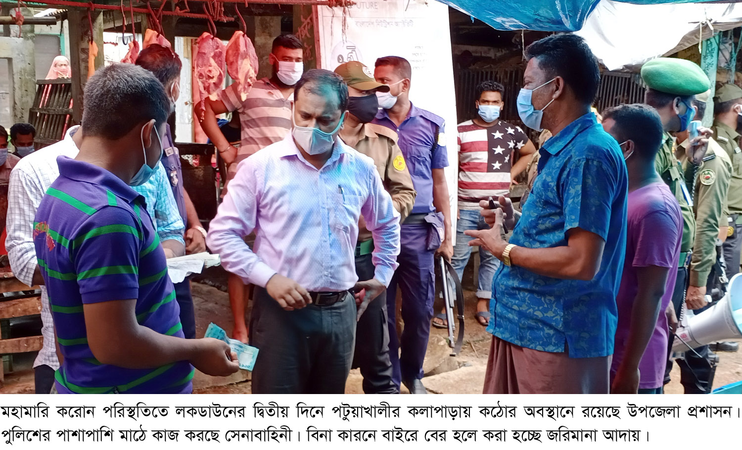 মহামারি করোন পরিস্থতিতে লকডাউনের দ্বিতীয় দিনে পটুয়াখালীর কলাপাড়ায় কঠোর অবস্থানে রয়েছে উপজেলা প্রশাসন। পুলিশের পাশাপাশি মাঠে কাজ করছে সেনাবাহিনী। বিনা কারনে বাইরে বের হলে করা হচ্ছে জরিমানা আদায়। কোভিট-১৯ এর বিধিমালা ও স্বাস্থ্যবিধি না মানায় শুক্রবার সকালে ১৩ জনকে অর্থদন্ড দিয়েছেন ভ্রাম্যমান আদালত।