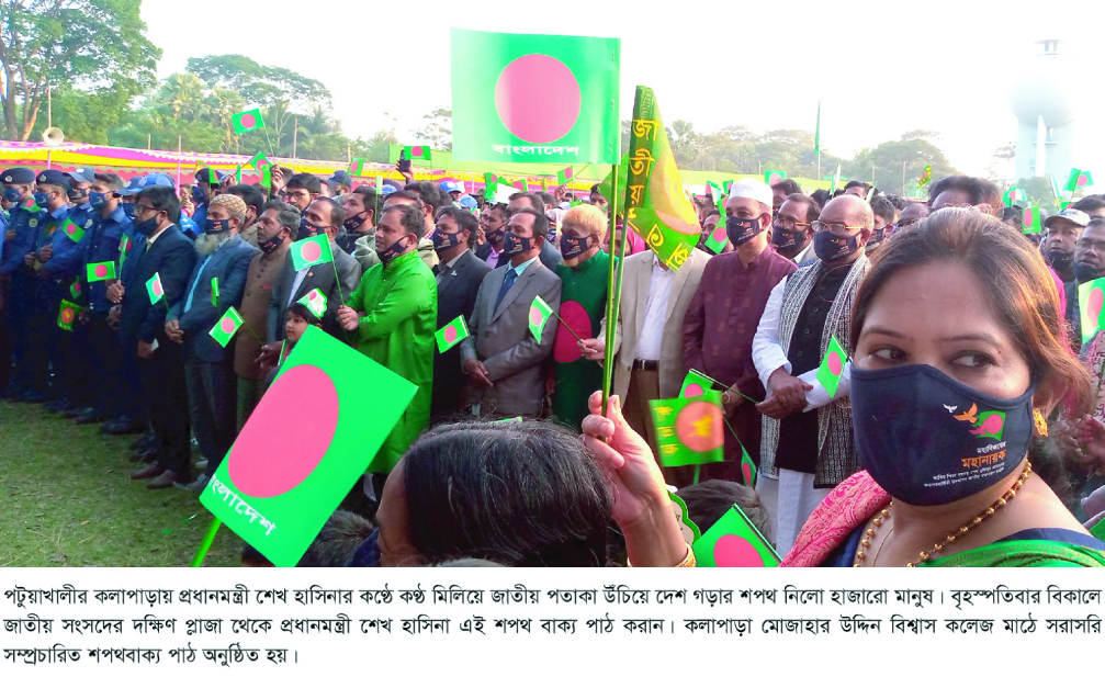 প্রধানমন্ত্রী শেখ হাসিনার কণ্ঠে কণ্ঠ মিলিয়ে জাতীয় পতাকা তুলে দেশ গড়ার