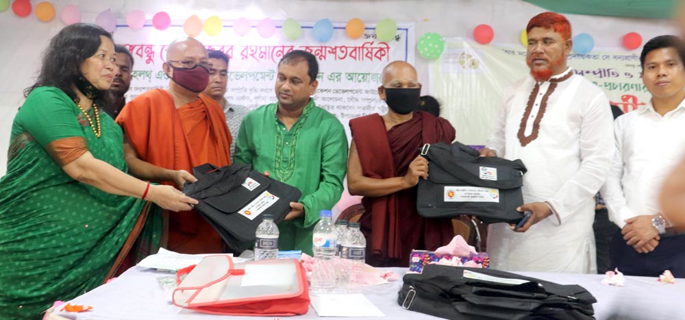 সাগরকন্যা কুয়াকাটায় রাখাইন জনগোষ্ঠীর উদ্যোগে জাতীর জনক বঙ্গবন্ধু শেখ মজিবুর রহমানের জন্মশতবার্ষিকী পালিত হয়েছে। এ উপলক্ষে বৃহস্পতিবার দুপুরে রাখাইন ছাত্রছাত্রীদের মাঝে সাইকেল ও স্কুল ব্যাগ বিতরণ করা হয়েছে। এর আগে বিষেশ প্রার্থনা, বর্ণাঢ্য র্যালী, বঙ্গবন্ধুর জীবনী আলোচনা ও বৌদ্ধসম্প্রদায়েরর বিহার গুলো মেরামত বাবদ চেক বিতরণ করা হয়। শেষ বিকালে রাখাইন শিশু-কিশোরদের অংশগ্রহনে মনজ্ঞ সাংস্কৃতিক অনুষ্ঠান অনুষ্ঠিত হয়। কুয়াকাটাস্থ হোটেল বনানীর মিলানায়তনে অং হেলথ্ এন্ড এডুকেশন ডেভেলপমেন্ট ফাউন্ডেশন এর আয়োজন করে।