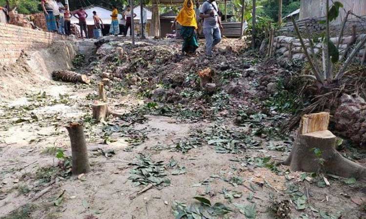 গাছ কেটে বৃদ্ধার জমি দখলের অভিযোগ শ্রম অধিদপ্তরের কর্মচারীর বিরুদ্ধে