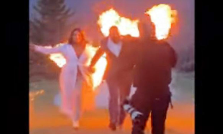 নিজের বিয়েকে স্মরণীয় করে রাখতে মানুষ কত কিছুই না করেন। সেই ধারাবাহিকতায় এবার যোগ হলেন যুক্তরাষ্ট্রের এক দম্পতি। বিয়ের অভ্যর্থনা অনুষ্ঠানে ছবি তুলতে নিজেদের গায়েই আগুন ধরিয়ে দেন তারা। সম্প্রতি তাদের সেই ভিডিও সামাজিক যোগাযোগমাধ্যমে ভাইরাল হয়েছে। নিউইয়র্ক পোস্ট, ট্রিবিউন ইন্ডিয়াসহ একাধিক গণমাধ্যমের খবরে এ তথ্য জানানো হয়েছে।