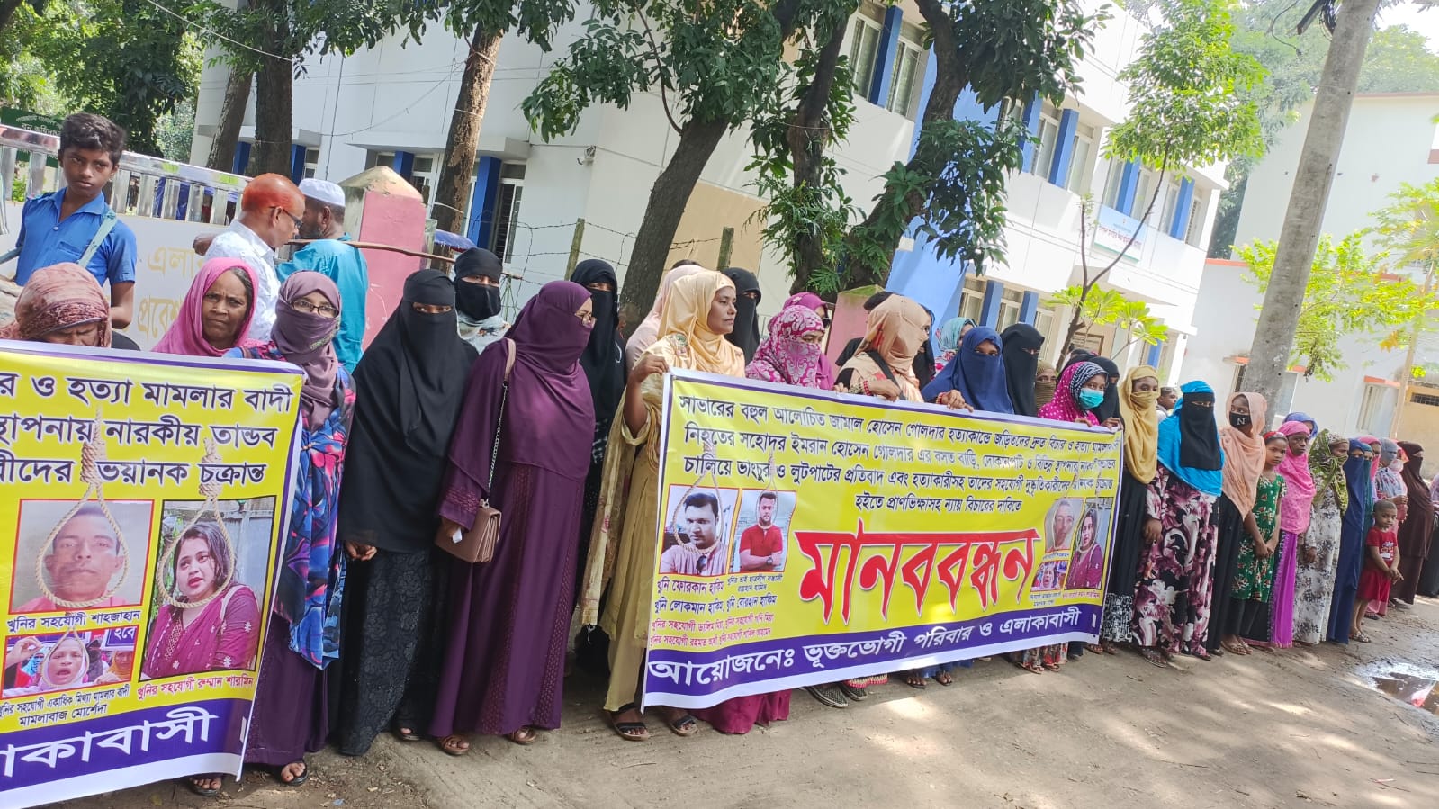 এ সময় নিহতের স্ত্রী মশিউড়া বেগম, ছেলে রিয়াজুলসহ শতাধিক মানুষ মানববন্ধনে অংশ নেয়।