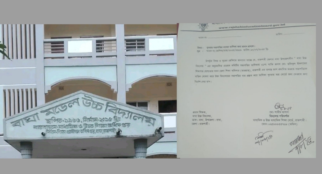 গত বৃহস্পতিবার (৭ আগস্ট) রাজশাহী শিক্ষা বোর্ডের বিদ্যালয় পরিদর্শক মো: শামীম হাসান এর স্বাক্ষরিত এক পত্র থেকে এ তথ্য নিশ্চিত হওয়া গেছে।