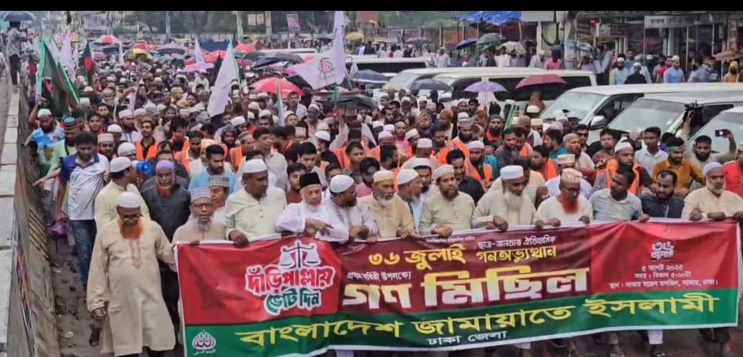 আজ ৫ আগস্ট (মঙ্গলবার) বিকেলে সাভার মডেল মসজিদের সামনে জুলাই অভ্যুত্থানের প্রথম বার্ষিকী উপলক্ষ্যে গণমিছিল ও বিশাল সমাবেশে বাংলাদেশ জামায়াতে ইসলামীর কেন্দ্রীয় মজলিশ শুরা সদস্য ও ঢাকা জেলা আমীর মাওলানা মোহাম্মদ দেলোয়ার হোসাইন সভাপতির বক্তব্যে বলেন এদেশের কিছুসংখ্যক মানুষ ও বিশেষ রাজনৈতিক দল ছাড়া সকলেই জুলাই-আগষ্টের মুক্তিযোদ্ধা। তাই এ বিষয়ে কোন বিভেদ সৃষ্টি না করার আহবান জানিয়েছেন।