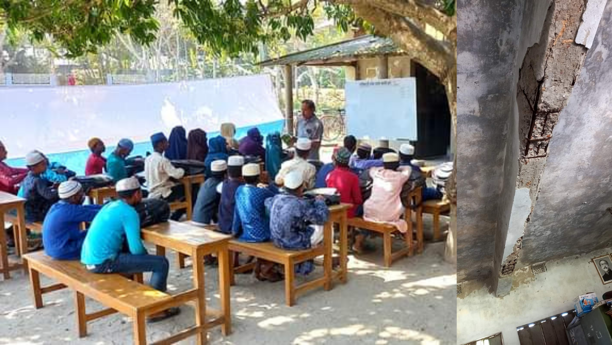 ঝুঁকিপূর্ণ ভবন, খোলা আকাশের নিচে চলছে পাঠদান