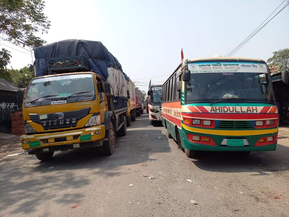দৌলতদিয়া ফেরিঘাটে পারাপারের অপেক্ষায় শতশত যানবাহন