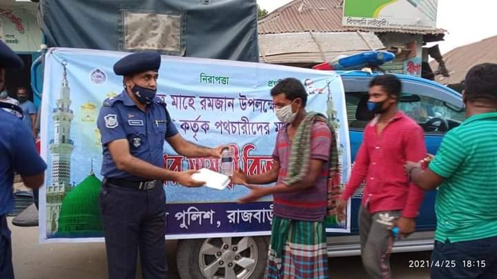 পবিত্র মাহে রমজান উপলক্ষে রাজবাড়ী জেলা পুলিশের আয়োজনে পাংশা মডেল থানা পুলিশ কালিবাড়ি মোড়ে  পথচারীদের মাঝে ইফতার সামগ্রী বিতরণ করেছে।