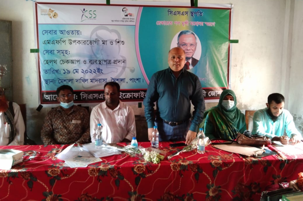 রাজবাড়ীর পাংশায় সিএসএস এনজিওর প্রতিষ্ঠাতা রেভারেন্ড পাল মুন্সির স্মরণে ফ্রী মেডিকেল ক্যাম্প অনুষ্ঠিত হয়েছে। এমএফপি উপকারভোগী মা ও শিশু সহ শিক্ষা প্রতিষ্ঠানের শতাধিক ছাত্রছাত্রীদের ফ্রী মেডিকেল সেবা প্রদান করা হয়।