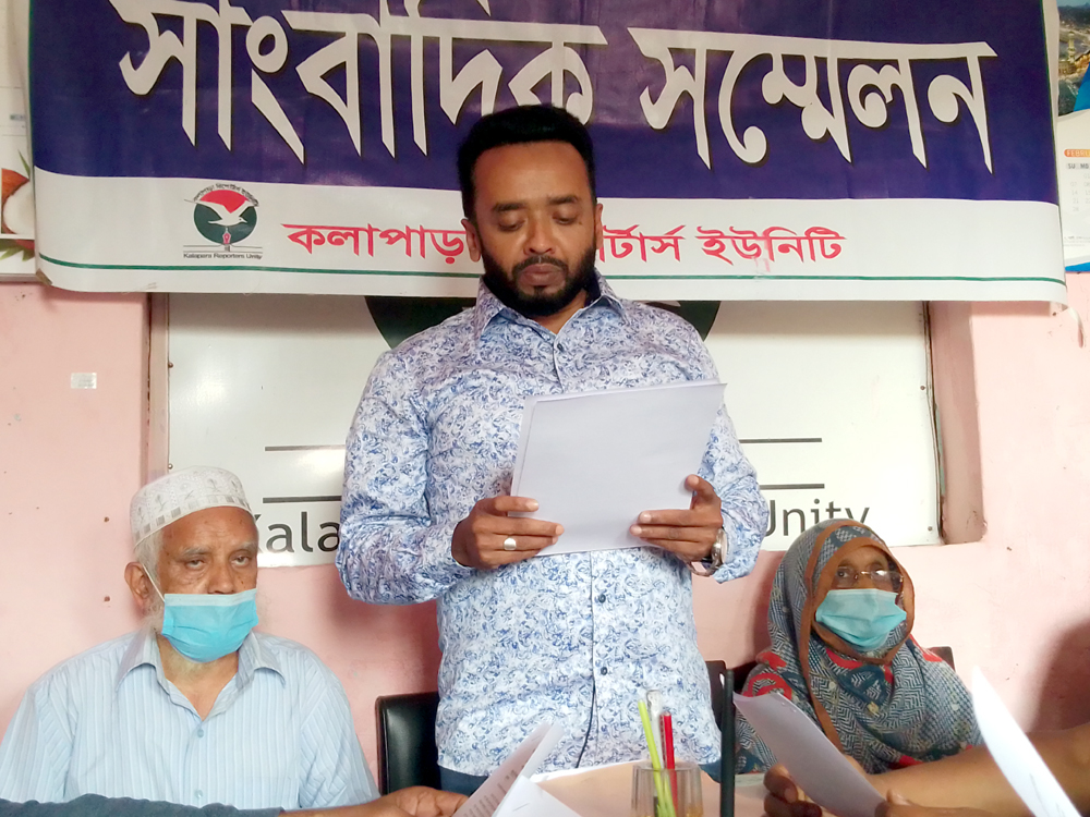 বৃহস্পতিবার বেলা ১২ টায় কলাপাড়া রিপোর্টার্স ইউনিটিতে এ সংবাদ সম্মেলন করে । এসময় তার বৃদ্ধ পিতা সমাজ সেবা অধিদপ্তরের অবসারপ্রাপ্ত লাল মোহম্মদ সন্যামত, মাতা মোসা.সালমা বেগম ও তার ছোট ভাই মামুন উপস্থিত ছিলেন।