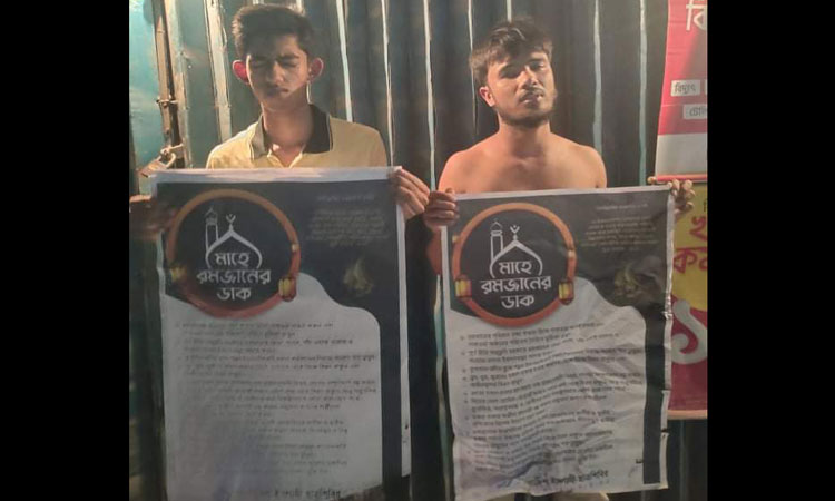 চট্টগ্রাম বিশ্ববিদ্যালয়ের ১ নং গেইট এলাকায় শনিবার রাত তিনটার দিকে' মাহে রমজানের ডাক’ শিরোনামের পোস্টার লাগানোর সময় দুুই শিবির কর্মীকে আটক করে চট্টগ্রাম বিশ্ববিদ্যালয়ের ছাত্রলীগ নেতারা।