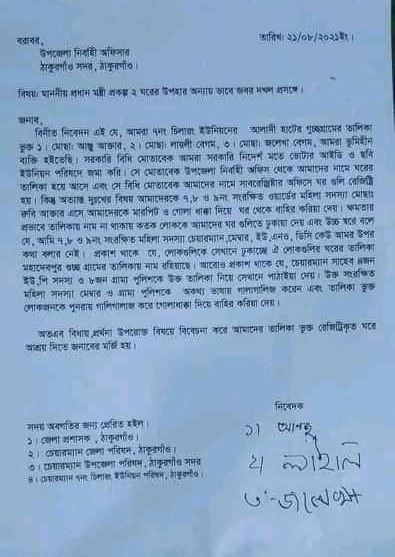 অপরদিকে গত শনিবার বিকালে ঠাকুরগাঁও সদর উপজেলা নির্বাহী অফিসারের কাছে এই বিষয়ে লিখিত অভিযোগ দেন আঞ্জু আক্তার, লাইলি বেগম ও জুলেখা বেগম এসময় তারা উভয়ে বলেন, রুবি আক্তার লোকজন নিয়ে এসে আমাদের কে মারপিট করে এবং সে আমাদের ঘর থেকে বের করে দিয়ে নিজের পছন্দের মানুষকে সেই ঘরগুলোতে থাকতে দেয়।