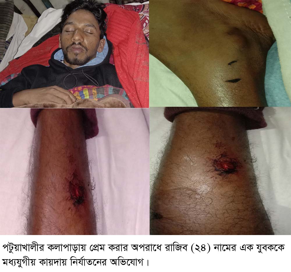 পটুয়াখালীর কলাপাড়ায় প্রেম করার অপরাধে রাজিব (২৪) নামের এক যুবককে অমানবিক নির্যাতন অভিযোগ পাওয়া গেছে। বৃহস্পতিবার সন্ধ্যায় আমতলী উপজেলার ১ নং ওয়ার্ডের মনির মৃধার বাড়িতে এ ঘটনা ঘটে।