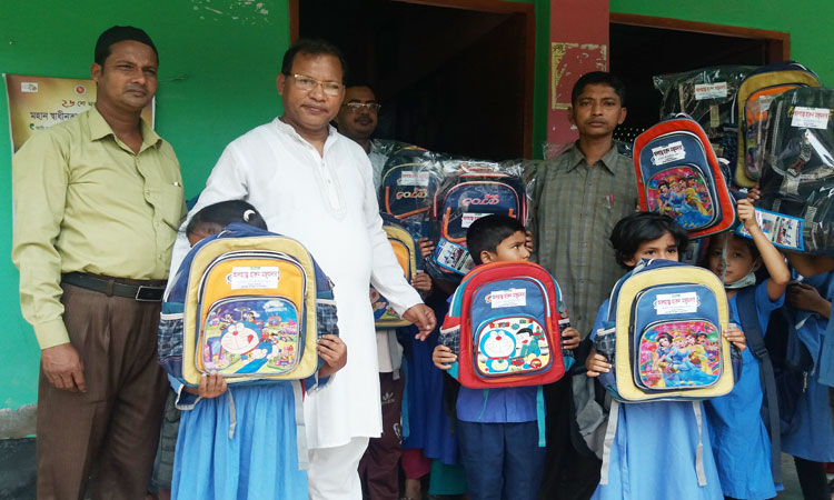 ফেনীর ফুলগাজী উপজেলার বন্দুয়া সরকারি প্রাথমিক বিদ্যালয়ের শিক্ষার্থীদেরকে স্কুলমূখী করার প্রয়াসে স্কুল ব্যাগ বিতরণ করা হয়েছে।