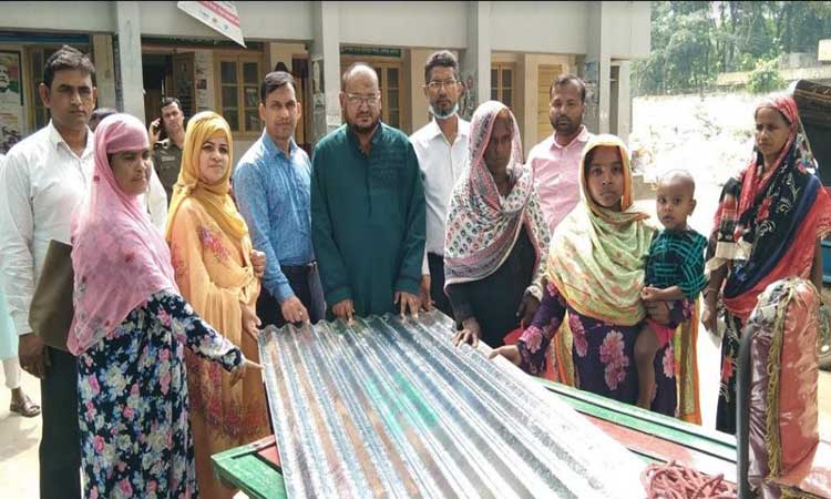 বকশীগঞ্জে অগ্নিকান্ডে ক্ষতিগ্রস্ত পরিবারের মাঝে ঢেউটিন ও চেক বিতরণ