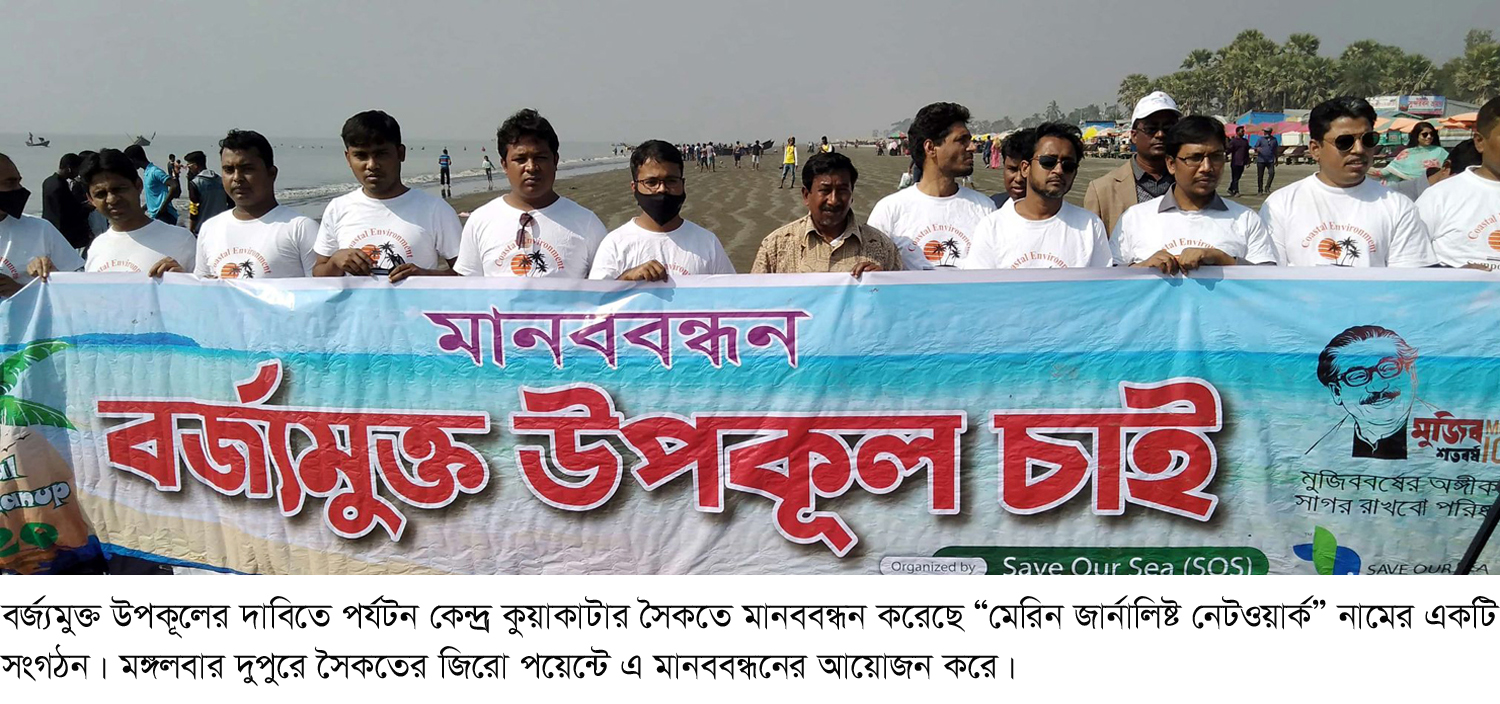 বর্জ্যমুক্ত উপকূলের দাবিতে কুয়াকাটার সৈকতে মানববন্ধন