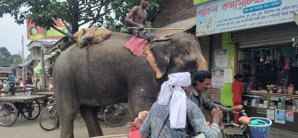বাঘায় হাতি দিয়ে টাকা আদায় বিড়ম্বনায় ব্যবসায়ীরা