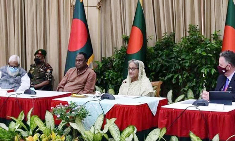 ‘মার্কিন বাজারে শুল্কমুক্ত প্রবেশাধিকার এবং অন্যান্য বাণিজ্য সুবিধার মাধ্যমে আমাদের বাণিজ্য সম্পর্ক আরও জোরদার করা যেতে পারে,’ উল্লেখ করে সরকারপ্রধান বলেন, ’বাংলাদেশ একটি উপযুক্ত সময়ে মার্কিন যুক্তরাষ্ট্রের সাথে মুক্ত বাণিজ্য চুক্তি নিয়ে আলোচনা শুরু করতে প্রস্তুত।’