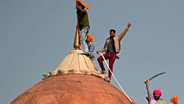 বিক্ষোভরত কৃষকরা পুলিশের লাঠি আর কাঁদানে গ্যাসের মধ্য দিয়ে ঢুকে পড়েছে দিল্লি প্রাণকেন্দ্রে এবং ঐতিহাসিক লাল কেল্লায়। সেখানে তারা উড়িয়ে দিয়েছে শিখ ধর্মের প্রতীক খালসা পতাকা।
