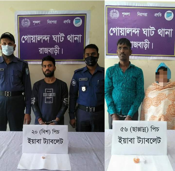 পুলিশ জানায়, গোপন সংবাদের ভিত্তিতে গোয়ালন্দঘাটের দৌলতদিয়া যৌনপল্লী থেকে মাদকসহ তাদের আটক করা হয়।