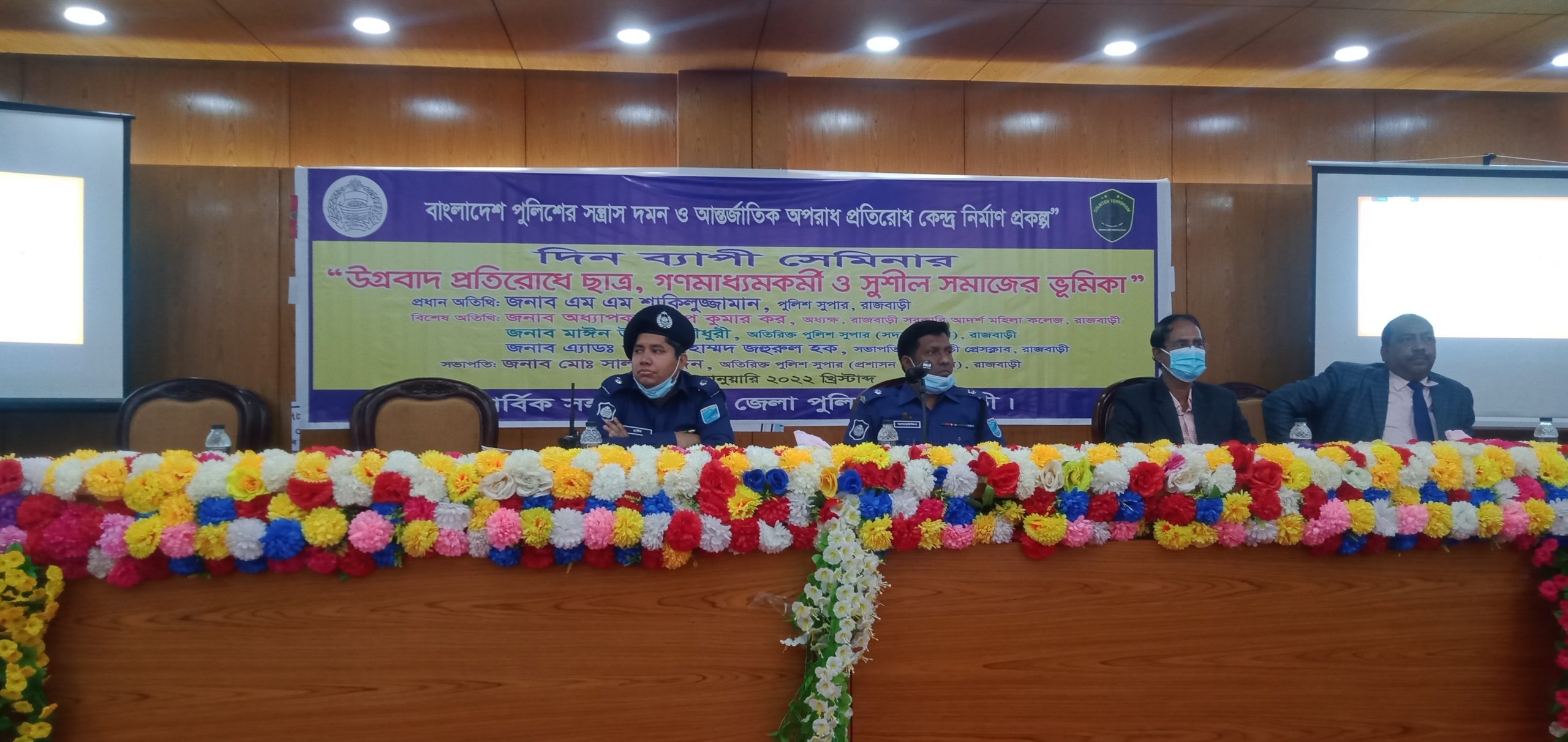 রাজবাড়ীতে বাংলাদেশ পুলিশের সন্ত্রাস ও আন্তর্জাতিক অপরাধ প্রতিরোধ কেন্দ্র নির্মাণ প্রকল্পের আওতায় উগ্রবাদ প্রতিরোধে ছাত্র, গণমাধ্যমকর্মী ও সুশীল সমাজের ভূমিকা নিয়ে দিন ব্যাপী সেমিনার অনুষ্ঠিত হয়েছে।