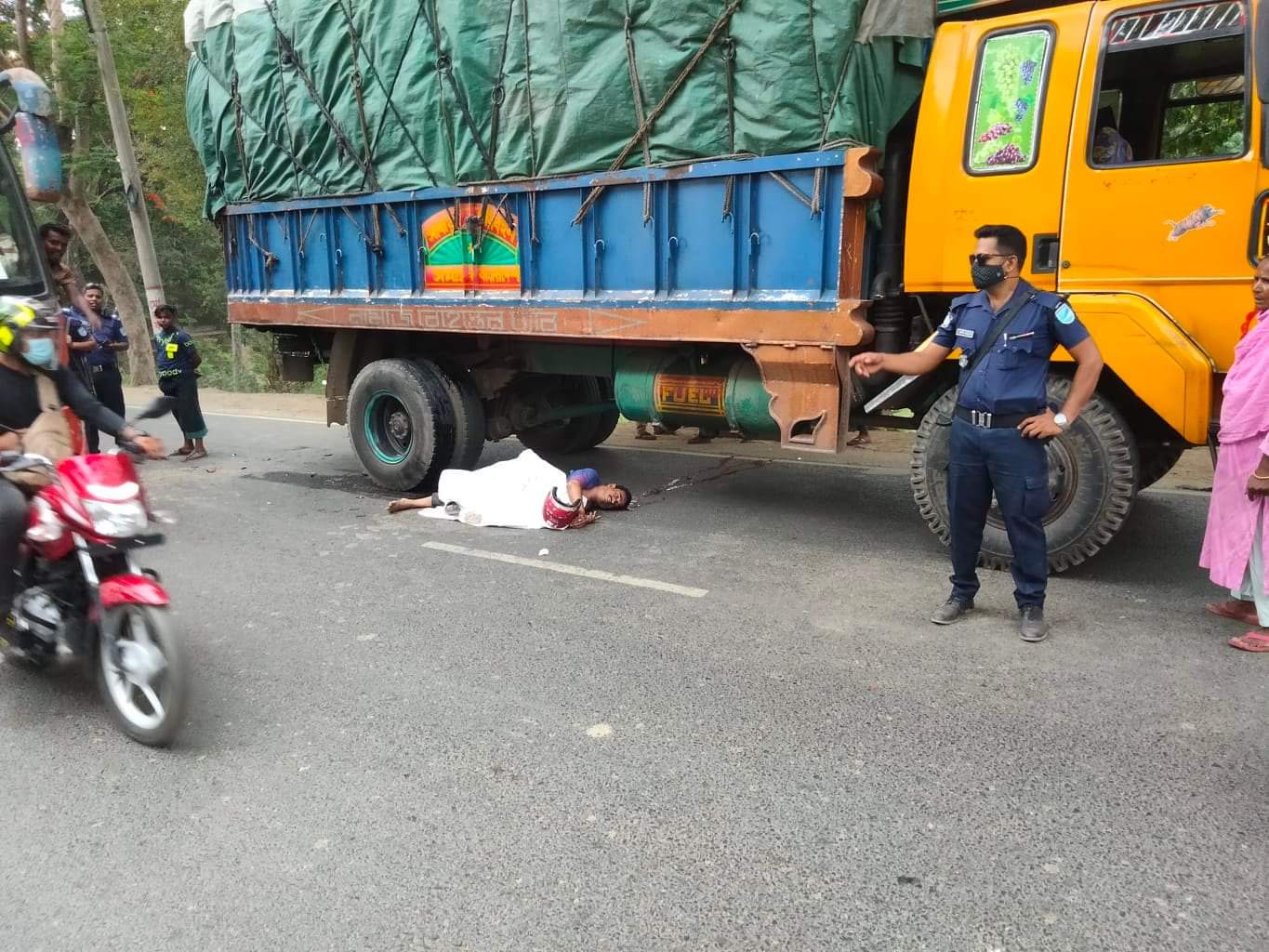 রাজবাড়ী জেলার দৌলতদিয়া ট্রাকের চাকায় পিষ্ট হয়ে মোটরসাইকেল চালকের মৃত্যু