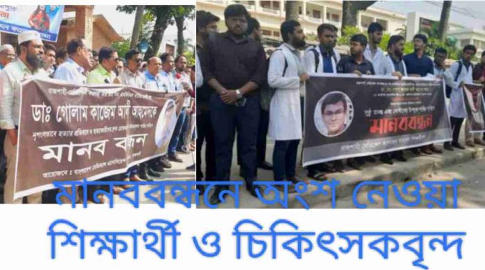 রাজশাহীতে চিকিৎসক হত্যার প্রতিবাদে মানববন্ধন