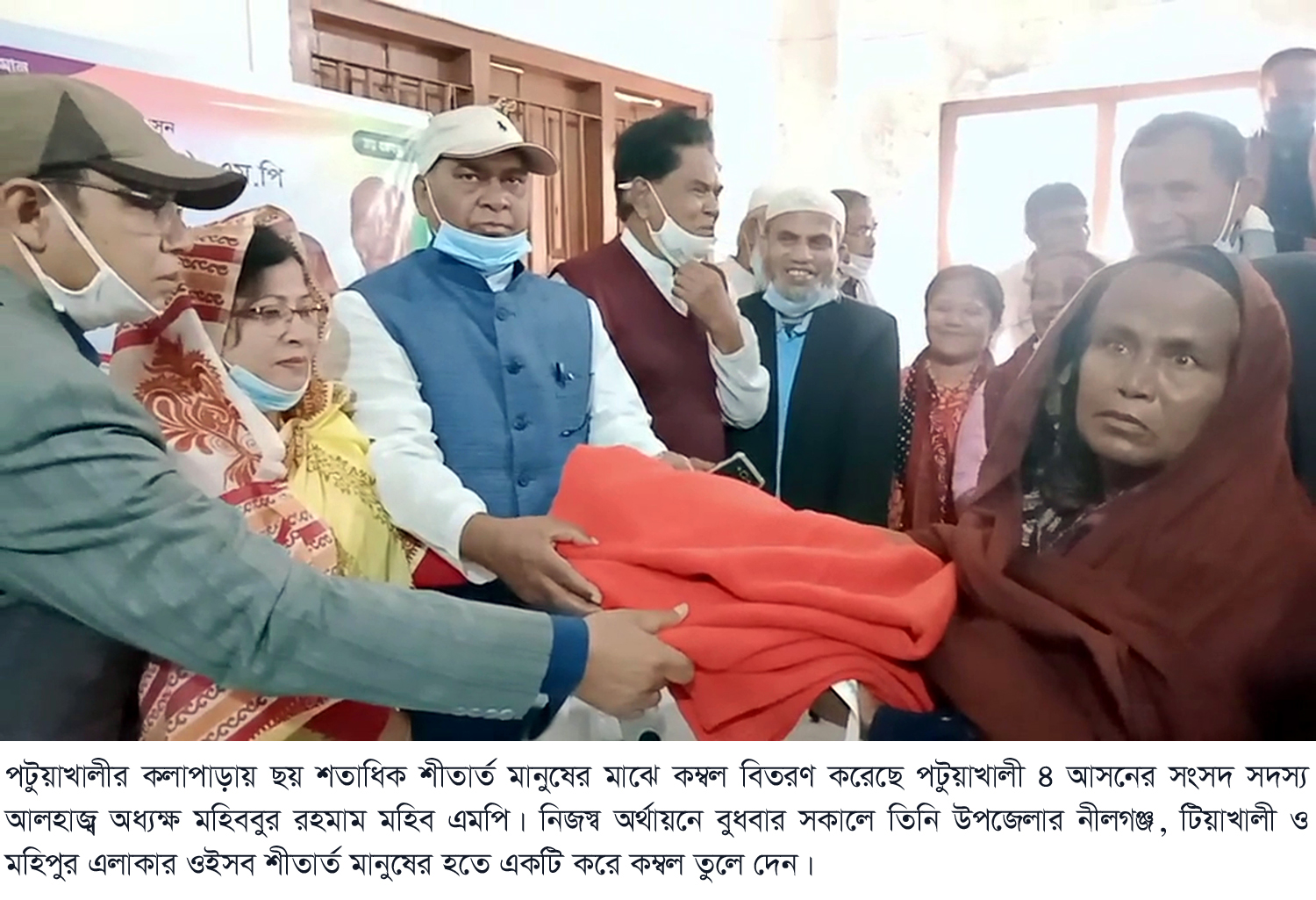 পটুয়াখালীর কলাপাড়ায় ছয় শতাধিক শীতার্ত মানুষের মাঝে কম্বল বিতরণ করেছে পটুয়াখালী-৪ আসনের সংসদ সদস্য প্রতিরক্ষা মন্ত্রনালয় সম্পর্কিত স্থায়ী কমিটির সদস্য আলহাজ¦ অধ্যক্ষ মহিববুর রহমান মহিব এমপি।