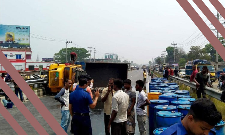 ১১ টন সয়াবিন তেল নিয়ে উল্টে গেল ট্রাক