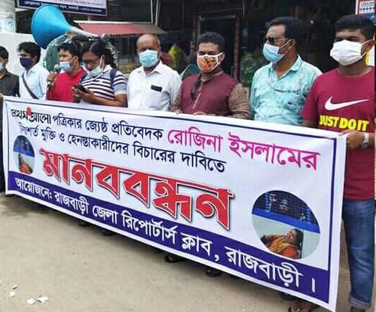 সাংবাদিক রোজিনার নিঃশর্ত মুক্তির দাবিতে মানববন্ধন ও সমাবেশ হয় রাজবাড়ীতে