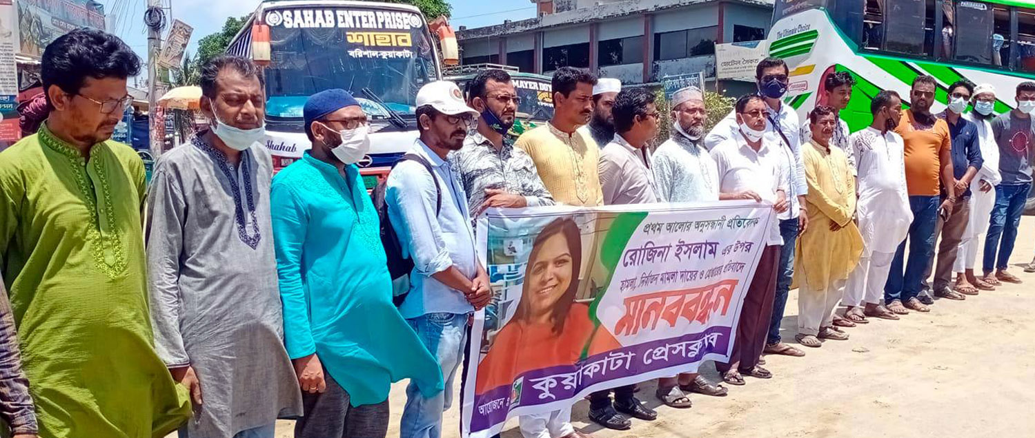 সাংবাদিক রোজিনা ইসলামকে শর্তহীন মুক্তির দাবীতে মানববন্ধন, কুয়াকাটায়